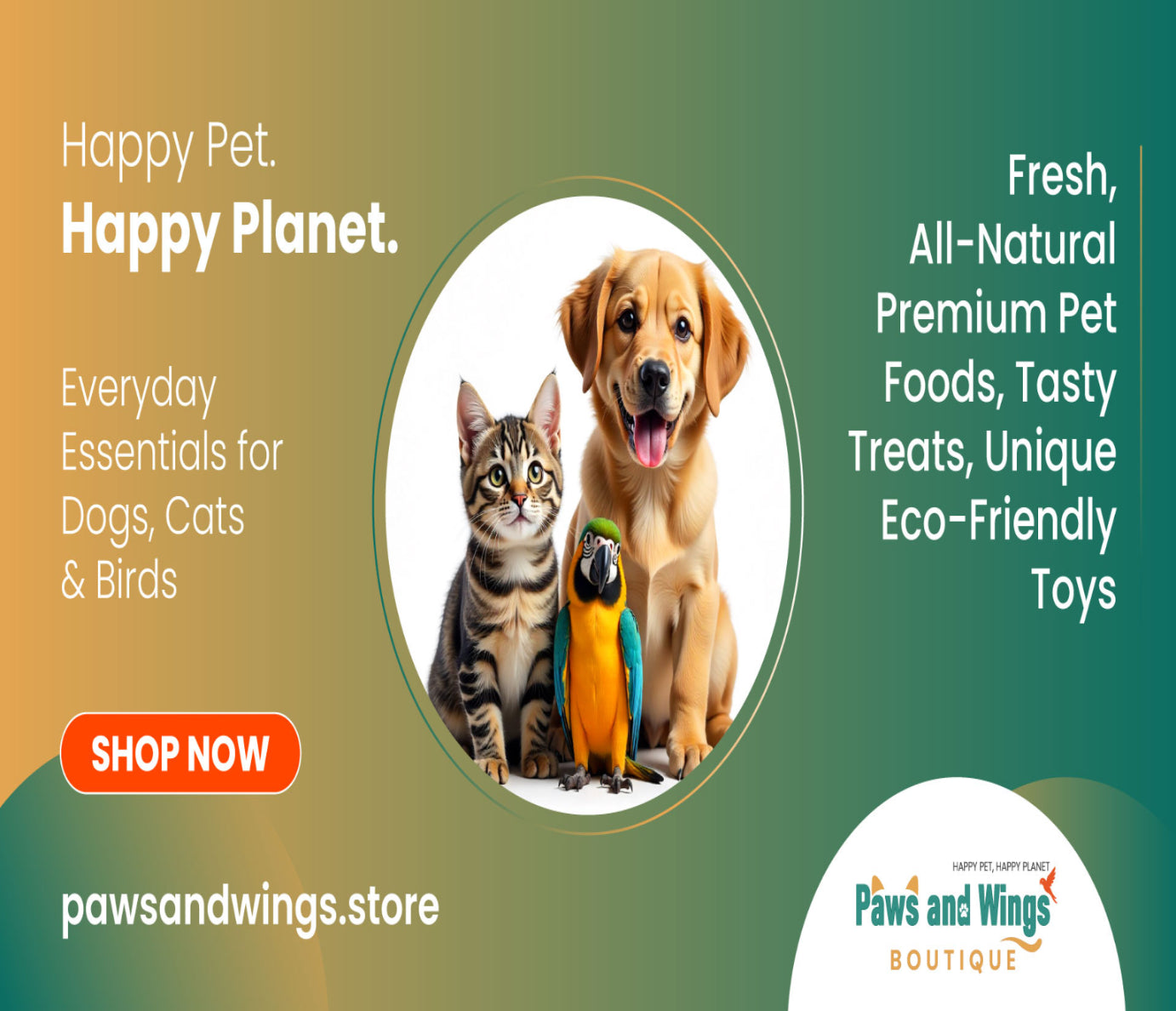 At Paws and Wings Boutique™, we’re passionate about every pet—furry, feathered, and everything in between. Our mission is to bring pet parents a trusted destination for high-quality, all-natural foods, wholesome treats, unique toys, and stylish accessories that keep dogs, cats, and birds healthy, happy, and thriving.