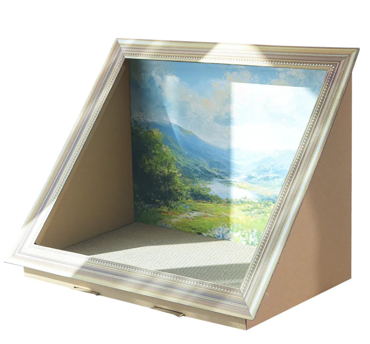 Give your cat the perfect blend of comfort and play with the Artistic Oil Painting Cat Scratch Board & Nest. Designed with a beautiful European-inspired oil painting print, this 2-in-1 scratcher and lounge provides a cozy resting spot while satisfying your cat’s natural scratching instincts. Made from durable corrugated paper, it ensures a sturdy yet comfortable surface for lounging, stretching, and claw maintenance.